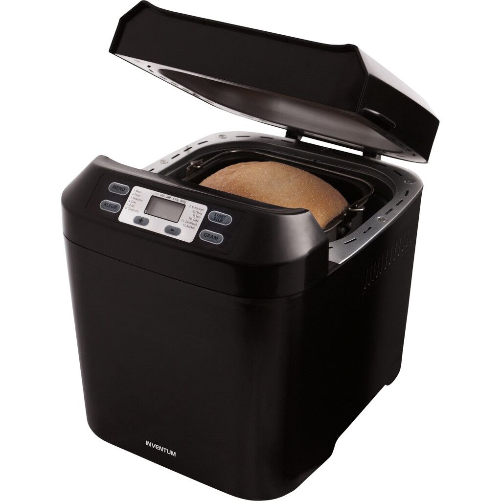 De Inventum broodbakmachine BM55 is geschikt voor maximaal 800 gram brood en de Inventum broodbakmachine BM55 heeft 12 automatische programma’s. Bijvoorbeeld voor het maken van jam en glutenvrij brood. Doe de ingrediënten in het bakblik van de Inventum broodbakmachine BM55, stel het juiste programma in en laat de broodbakmachine het werk doen. Kneden, mengen, rijzen en bakken, alles gaat volledig automatisch. Door de instelbare timer kun je het programma ’s nachts laten beginnen, zodat je ’s ochtends kunt genieten van vers gebakken brood.